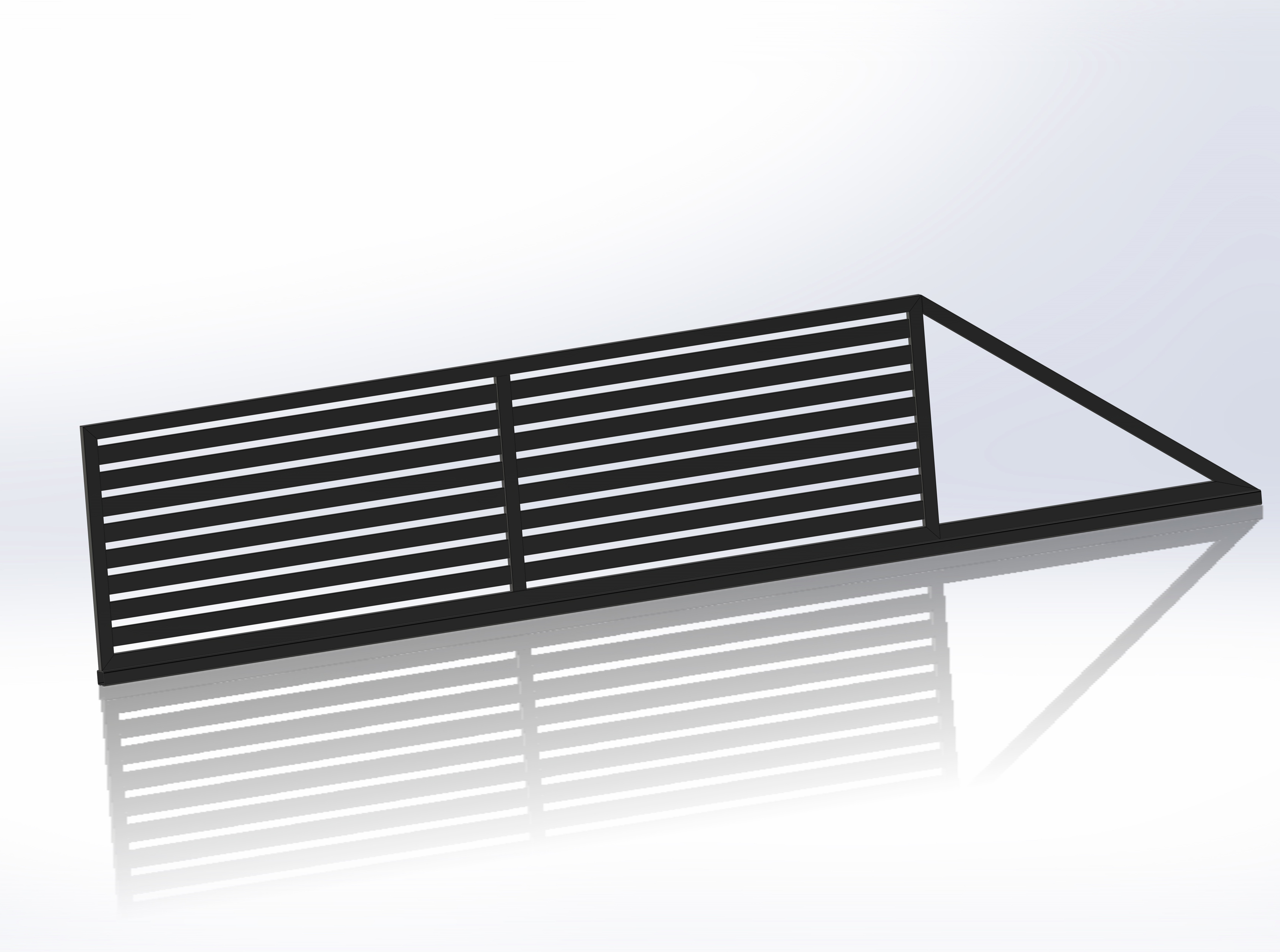 Brama przesuwna w stylu poziomym. Nasz flagowy produkt sprzedawany w największej ilości w całym kraju. Rama wykonana jest z profila 80x40x2 mm, wypełnienie profil 100x20x1,5 mm.